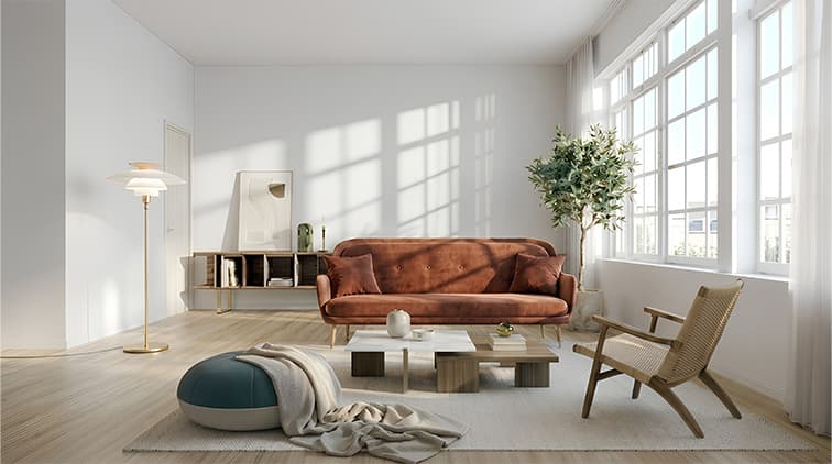 居住中の販売予定物件など、実物の空室写真が用意できない時のステージングサービス(家具消しにステージング)。タイプはラグジュアリー、北欧風、シンプルモダンからお選び頂けます。