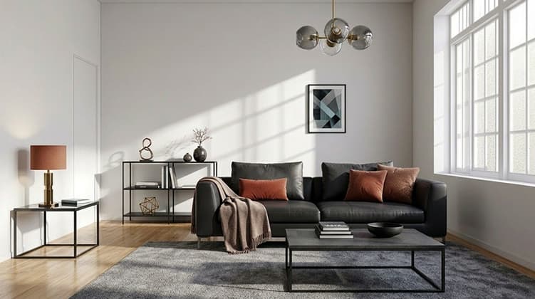 生活感のない空室写真が、清潔で機能的なモダンなリビングへ
